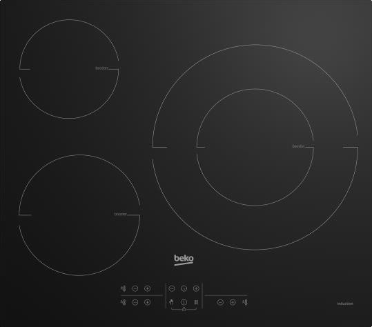 Placa de Inducción Beko HII63205MT | 3 Fuegos + Booster 32cm | Alta Potencia