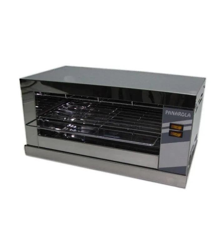 El tostador profesional Panarola TSC es ideal para negocios de hostelería que buscan rapidez, eficiencia y resultados homogéneos en cada tostada. Equipado con resistencias de cuarzo en la parte superior e inferior, funde ingredientes como queso o mantequilla al instante.
